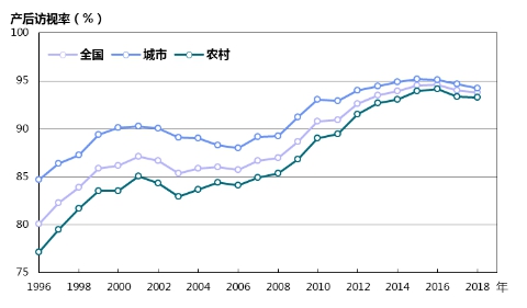 圖12 1996—2018年產(chǎn)后訪視率變化趨勢(shì)