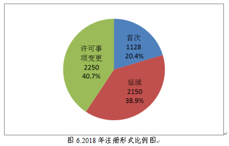 2018年,國家藥品監(jiān)督管理局共批準醫(yī)療器械首次注冊、延續(xù)注冊和變更注冊5528項。與2017年相比注冊批準總數(shù)量減少38.0%。其中,首次注冊 1128項,延續(xù)注冊2150項,許可事項變更2250項。