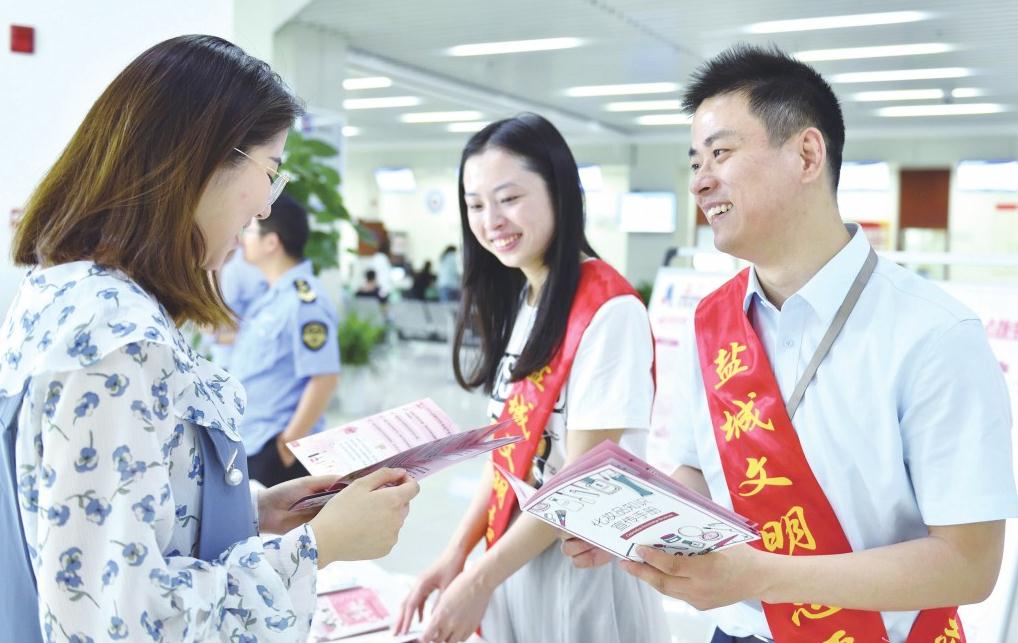 日前,江蘇省鹽城市市場監(jiān)管局城南分局工作人員在區(qū)政務服務中心開展化妝品安全知識宣傳活動,現(xiàn)場發(fā)放資料,向市民宣傳科學護膚知識、真假化妝品識別方法,并接受群眾咨詢。蔣曉鵬 攝