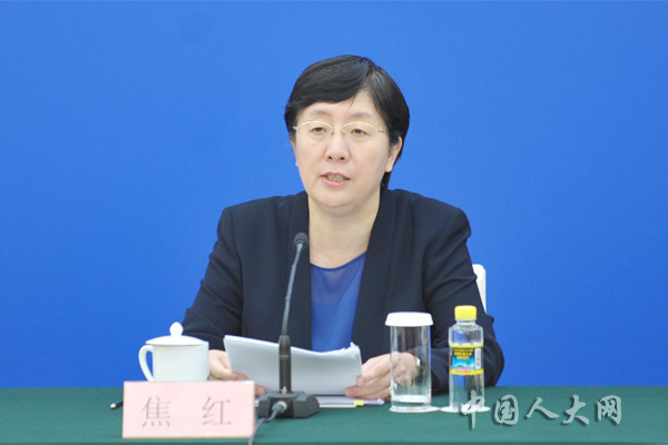 6月29日下午,十三屆全國人大常委會第十一次會議閉幕后,全國人大常委會辦公廳在人民大會堂臺灣廳召開新聞發(fā)布會,全國人大常委會法工委、國家衛(wèi)生健康委、國家藥監(jiān)局等單位有關(guān)負(fù)責(zé)人出席新聞發(fā)布會,共同回答剛剛通過的疫苗管理法的有關(guān)問題。圖為國家藥品監(jiān)督管理局局長焦紅回答記者提問。中國人大網(wǎng) 陶宏林 攝