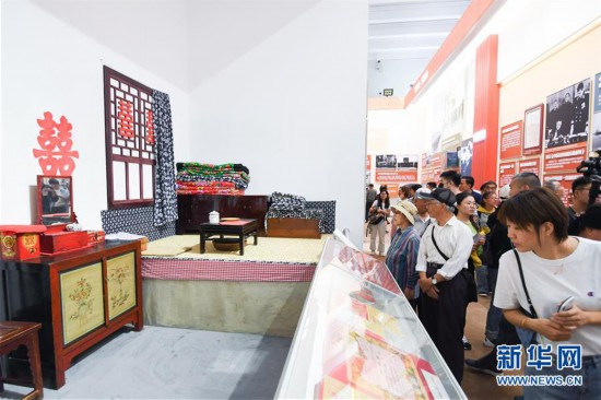 9月24日,觀眾在成就展上參觀50年代婚房的場景。 當日,“偉大歷程 輝煌成就——慶祝中華人民共和國成立70周年大型成就展”開始向公眾開放。(新華社記者陳曄華 攝)