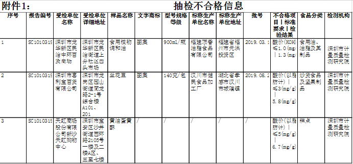 深圳市市場(chǎng)監(jiān)督管理局2020年食品安全抽樣檢驗(yàn)情況通報(bào)(第一期)