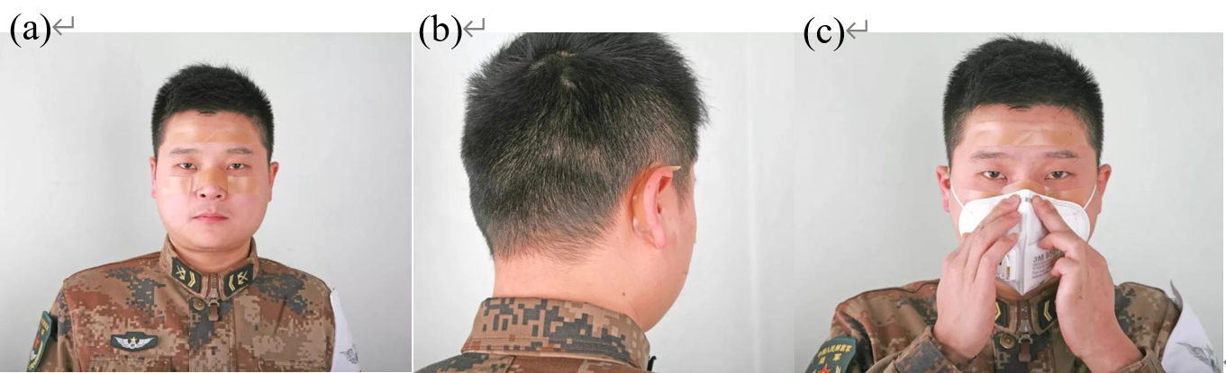 新型敷料黏貼部位及后續(xù)操作 a.顏面部敷料黏貼部位,b.耳廓敷料黏貼部位,c.按照標(biāo)準(zhǔn)要求佩戴防護(hù)口罩(圖片轉(zhuǎn)自醫(yī)脈通)