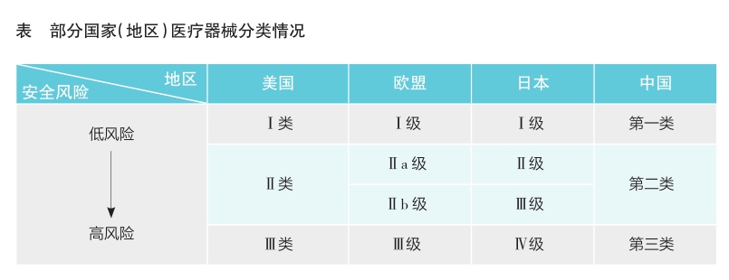 縱觀發(fā)達(dá)國家對(duì)醫(yī)療器械的監(jiān)管,普遍采取按照風(fēng)險(xiǎn)程度區(qū)別管理的措施,部分國家(地區(qū))醫(yī)療器械分類情況見表。