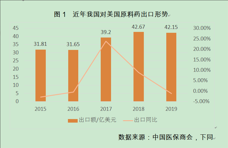 圖1 近年我國對美國原料藥出口形勢 數(shù)據(jù)來源:中國醫(yī)保商會 下同