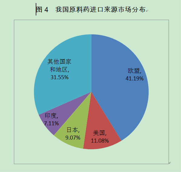 圖4 我國原料藥進(jìn)口來源市場分布