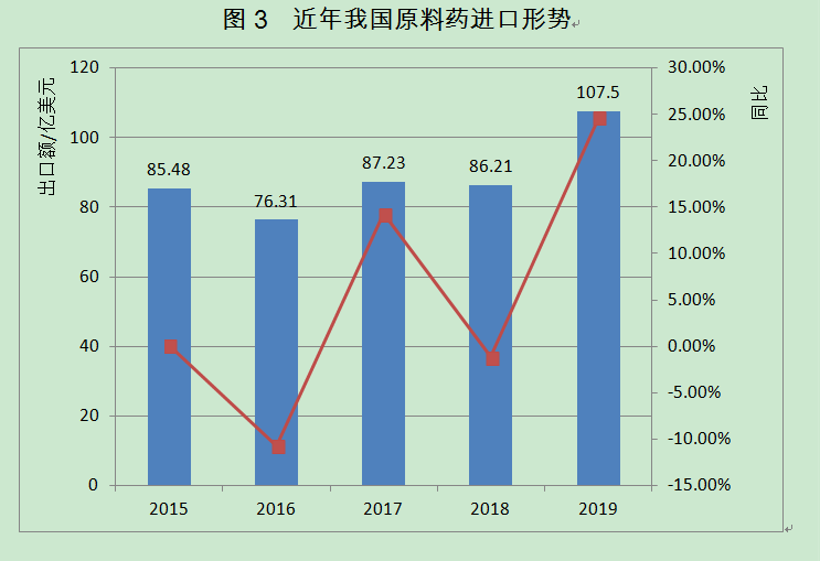 圖3 近年我國原料藥進(jìn)口形勢