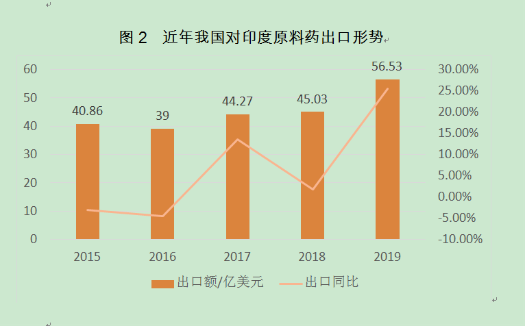 圖2 近年我國對印度原料藥出口形勢