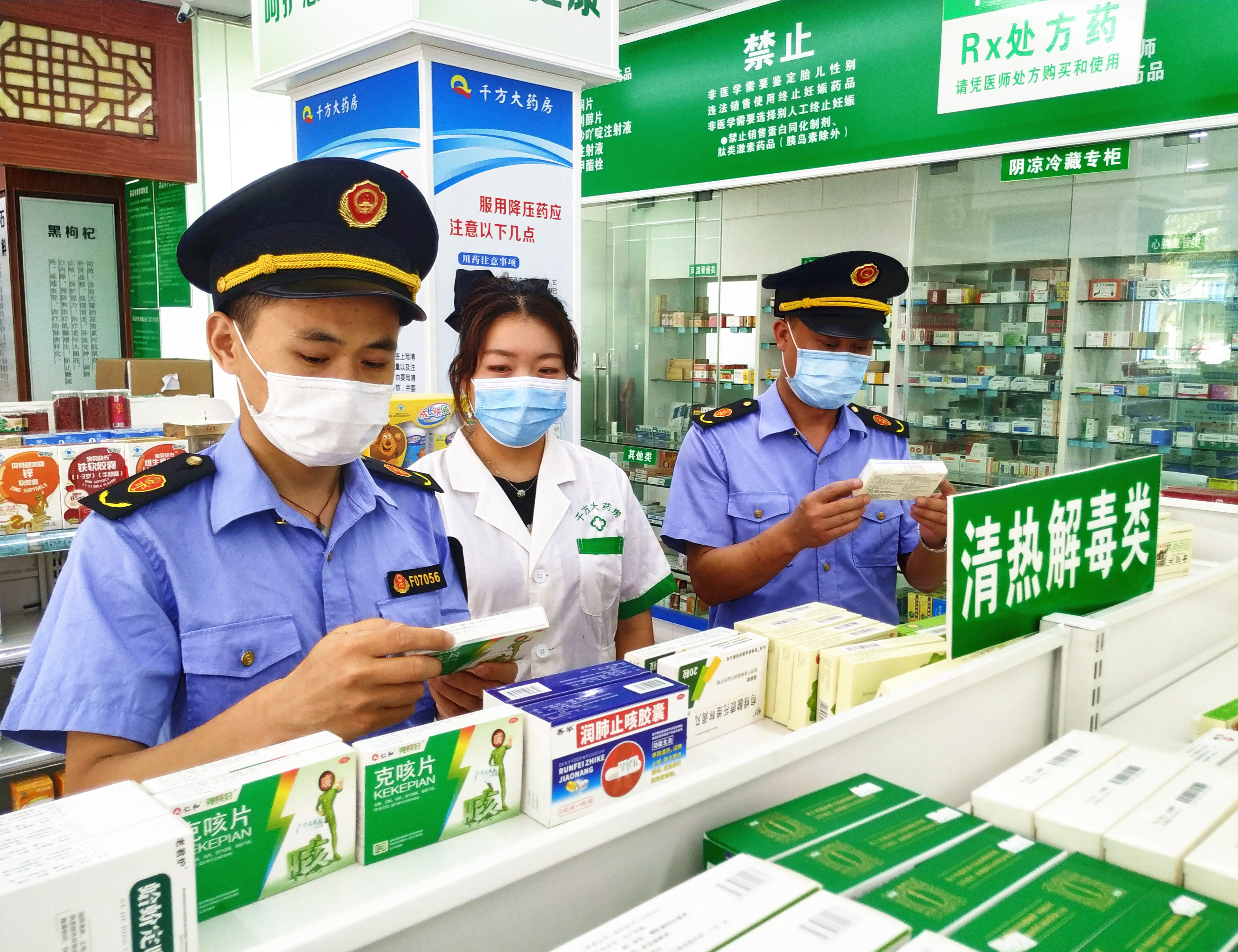 圖為該局執(zhí)法人員在一家藥店檢查。