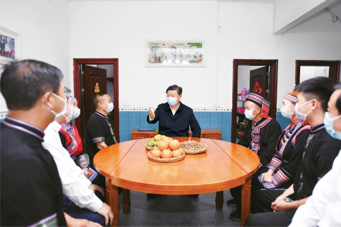 2020年9月16日至18日,中共中央總書記、國(guó)家主席、中央軍委主席習(xí)近平在湖南考察。這是16日下午,在郴州市汝城縣文明瑤族鄉(xiāng)沙洲瑤族村,習(xí)近平同村民朱小紅一家拉家常。新華社記者 謝環(huán)馳/攝