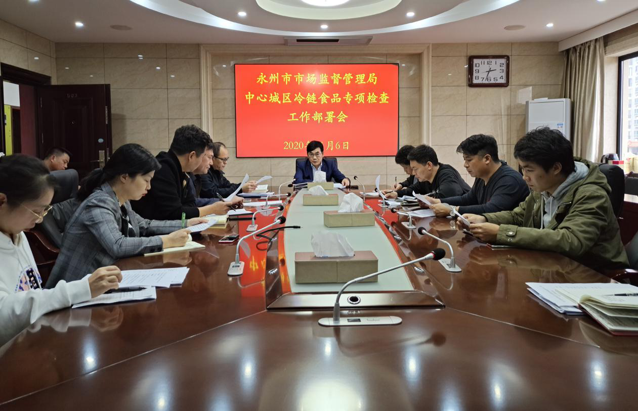 中國(guó)食品藥品網(wǎng)訊 近日,湖南省永州市市場(chǎng)監(jiān)督管理局召開(kāi)中心城區(qū)冷鏈?zhǔn)称穼?zhuān)項(xiàng)檢查工作部署會(huì),認(rèn)真貫徹落實(shí)省、市有關(guān)疫情防控工作部署,決定自11月7~16日在中心城區(qū)開(kāi)展為期10天的冷鏈?zhǔn)称穼?zhuān)項(xiàng)執(zhí)法檢查,切實(shí)防控新冠病毒通過(guò)冷鏈?zhǔn)称份斎腼L(fēng)險(xiǎn),全力守護(hù)人民群眾生命健康和食品安全。