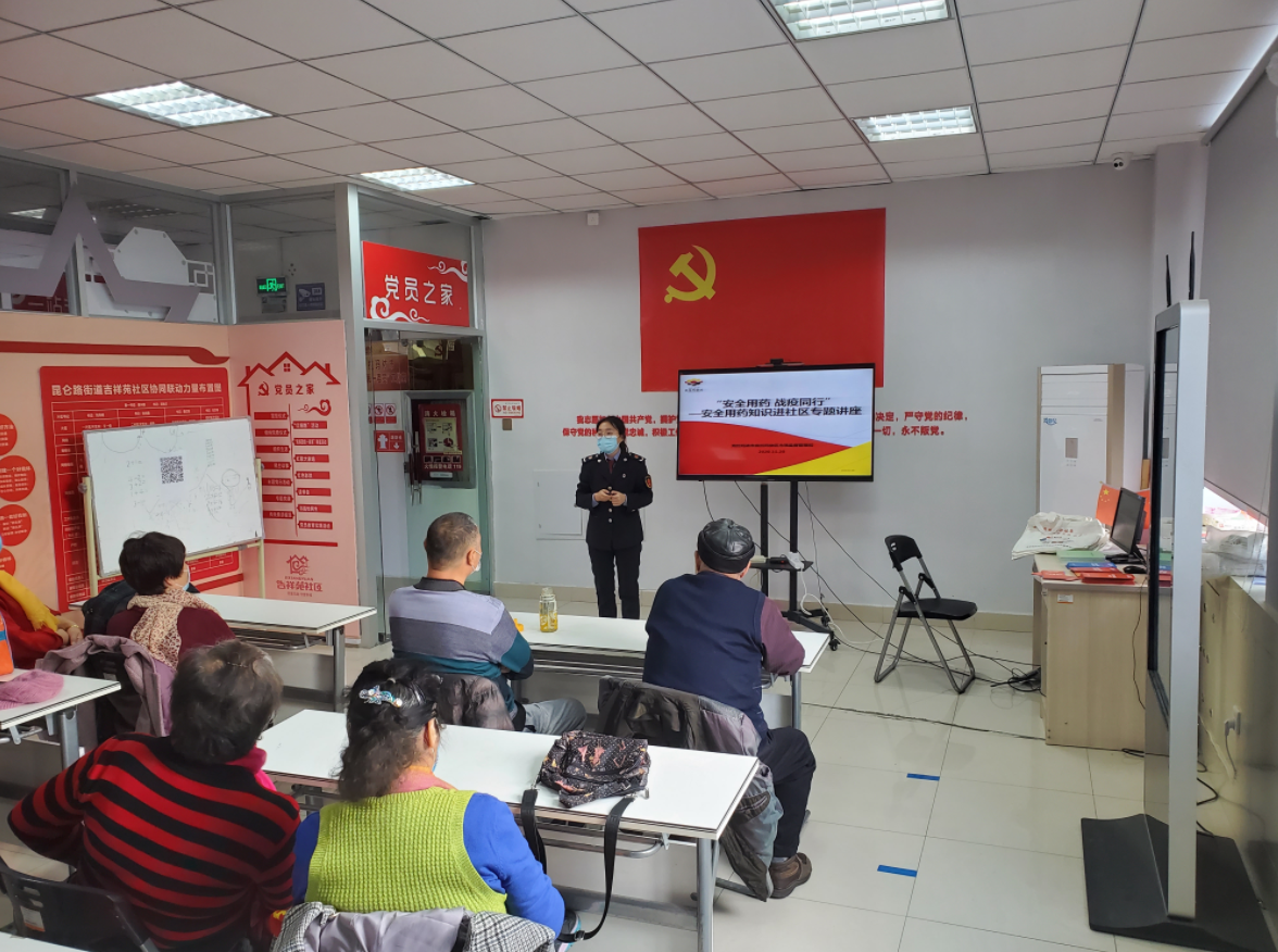 結(jié)合疫情防控,克拉瑪依區(qū)市場(chǎng)監(jiān)管局還開(kāi)展了安全用藥知識(shí)進(jìn)社區(qū)活動(dòng),在聯(lián)點(diǎn)社區(qū)開(kāi)展用藥安全咨詢、宣傳藥品安全投訴舉報(bào)途徑、防疫藥械的選用要點(diǎn)和注意事項(xiàng),并邀請(qǐng)資深執(zhí)業(yè)藥師開(kāi)展專題講座,就高血壓、糖尿病等慢性病的用藥安全進(jìn)行科普宣傳,同時(shí)向參加講座人員發(fā)放安全用藥宣傳紀(jì)念品及宣傳單。