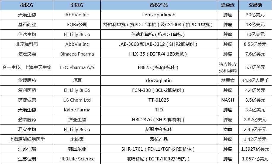 中國和全球的融合度不斷增強,出海模式也變得越來越多元,如果說商業(yè)化授權是中國藥企出海探索國際市場的好選擇,那么技術平臺和早期臨床產品的開發(fā)和商業(yè)化權益的對外許可,可能也是海外藥企向東方“尋寶”的好時機,交易規(guī)模也越來越大。