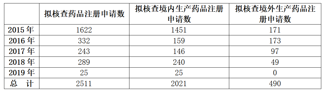 表3.2015~2019年國家藥監(jiān)部門公布收到的已完成臨床試驗申報生產(chǎn)或進口藥品注冊申請擬進行藥物臨床試驗數(shù)據(jù)核查情況