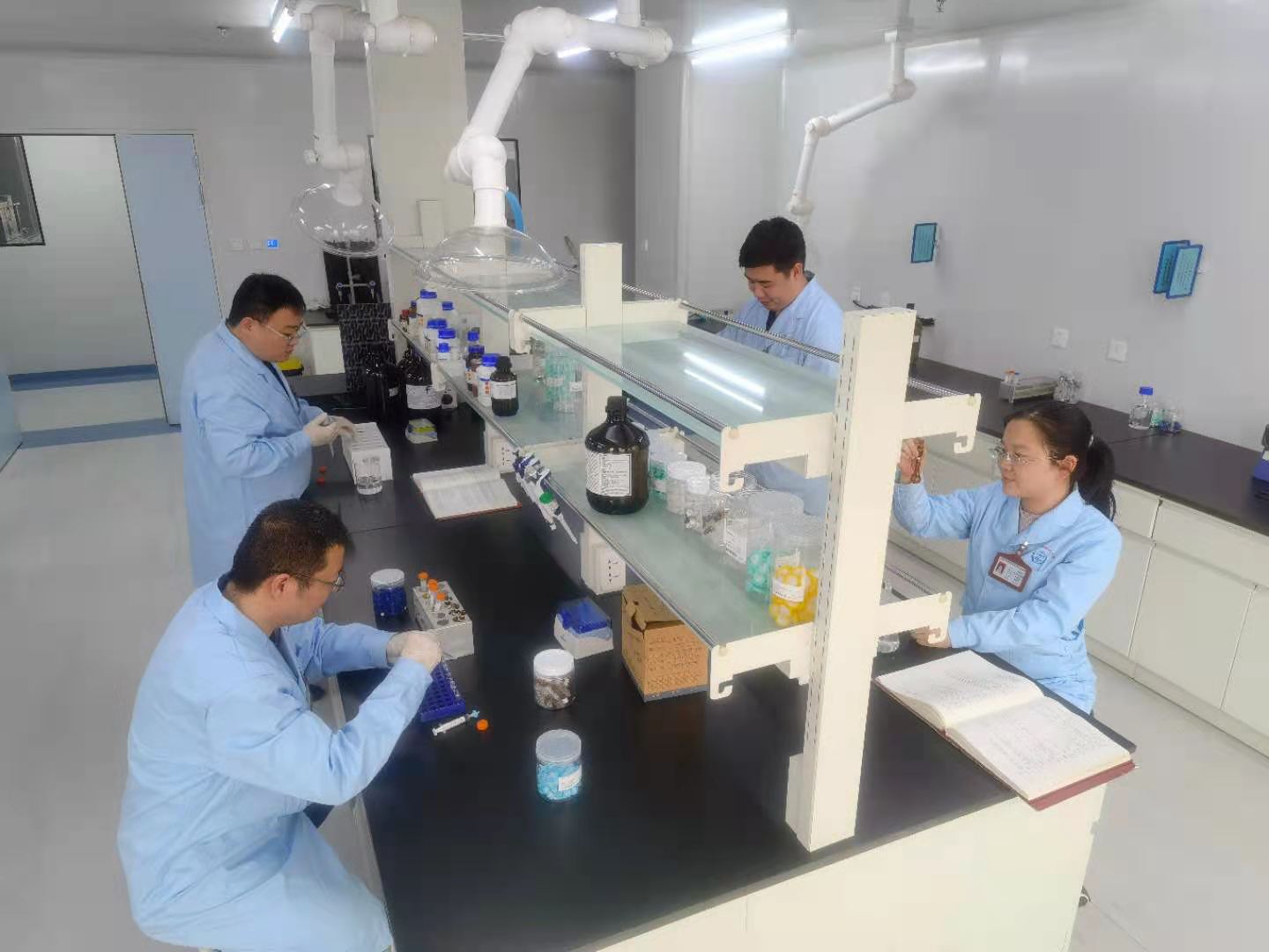圖為化妝品檢測室人員正在分析檢驗(yàn)檢測中遇到的問題,積極討論探索性研究的思路。山西省食品藥品檢驗(yàn)所供圖