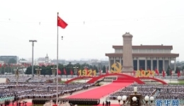 2021年7月1日上午,天安門廣場,慶祝中國共產黨成立100周年大會隆重舉行。雄鷹翱翔,空中護旗梯隊破空而來,懸掛在直升機上的巨型條幅迎風向前,其中“偉大的中國人民萬歲”彰顯的正是中國共產黨“人民至上”的價值取向。