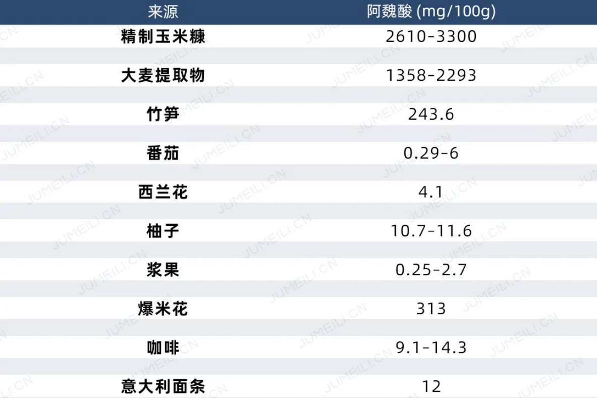 阿魏酸的化學(xué)名稱為4-羥基-3-甲氧基苯丙烯酸,其結(jié)構(gòu)為一種肉桂酸衍生物,本質(zhì)是一種植物酚酸。日常生活中,阿魏酸存在于諸如意大利面、麥片、爆米花等食品中,甚至當(dāng)歸、川芎、升麻等中藥材也含有阿魏酸。