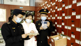 圖為第五分局執(zhí)法人員正在檢查新冠治療用藥品。