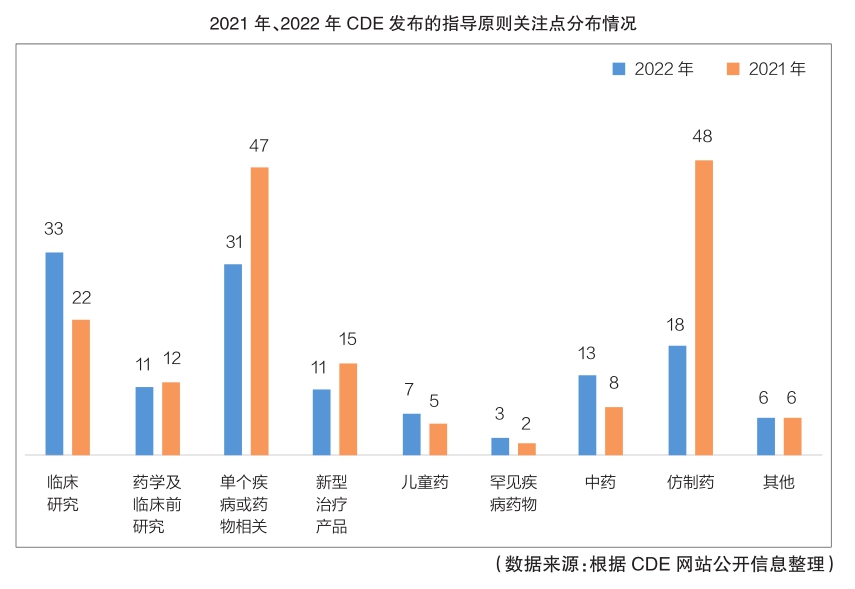 在兒童藥方面,2022年CDE共發(fā)布2項正式指導(dǎo)原則、5項征求意見稿,對兒童藥研發(fā)面臨的問題給予全方位關(guān)注。其中包括對臨床存在迫切需求的兒科疾病新藥研發(fā)提供技術(shù)指導(dǎo),提出參考成人患者研究數(shù)據(jù)開發(fā)兒童藥的具體方法,同時針對兒童的心理生理特點,明確兒童藥研發(fā)的注意事項。相關(guān)指導(dǎo)原則的發(fā)布,旨在降低兒童藥研發(fā)者參與門檻。