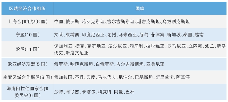 表2 “一帶一路”沿線國家所屬區(qū)域經(jīng)濟合作組織情況
