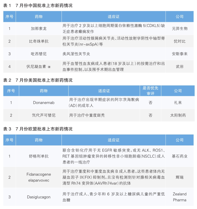 2024年7月份中美歐批準上市新藥盤點:又一阿爾茨海默病新藥在美獲批