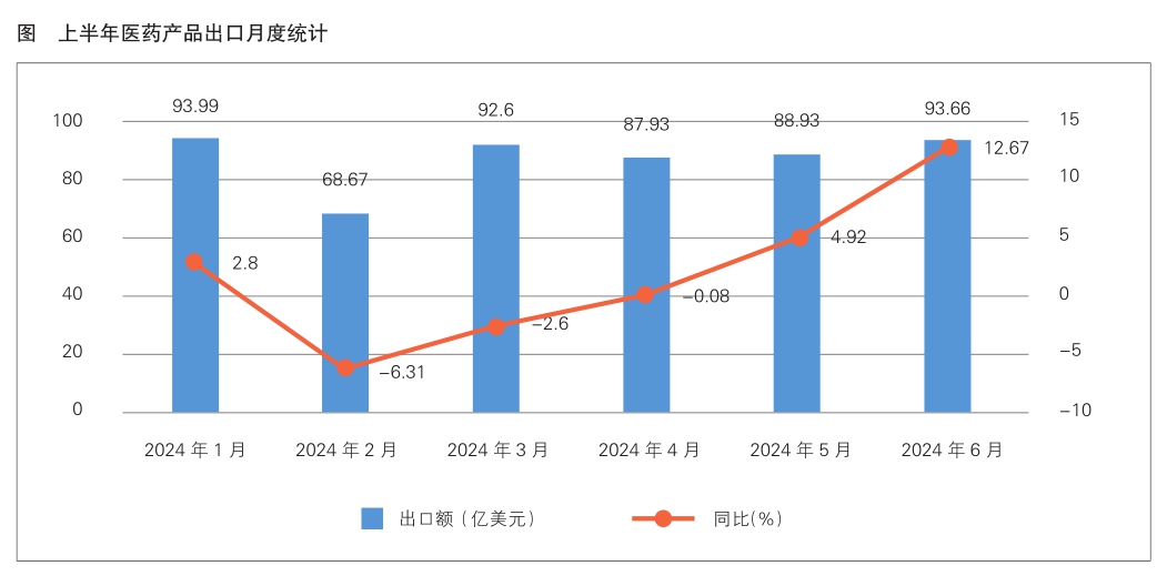 在經(jīng)歷了2022、2023年連續(xù)兩年出口額下降后,今年上半年,我國醫(yī)藥產(chǎn)品出口額近三年來首次實現(xiàn)正增長。