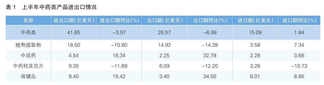 上半年,中藥類產(chǎn)品出口額26.57億美元,占醫(yī)藥健康產(chǎn)品出口比重5.05%,同比下降6.99%。下降的主要原因是,占比56.08%的植物提取物出口額同比下降14.28%。1—6月,植物提取物出口額14.92億美元,出口量增長20.6%,出口單價則下降28.9%,呈現(xiàn)低價競爭、以價換量的出口態(tài)勢。