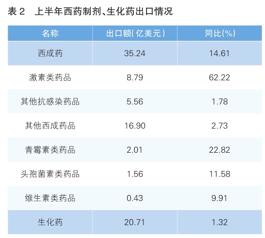上半年,西藥類產(chǎn)品出口額269.37億美元,占比51.23%,同比增長1.91%。