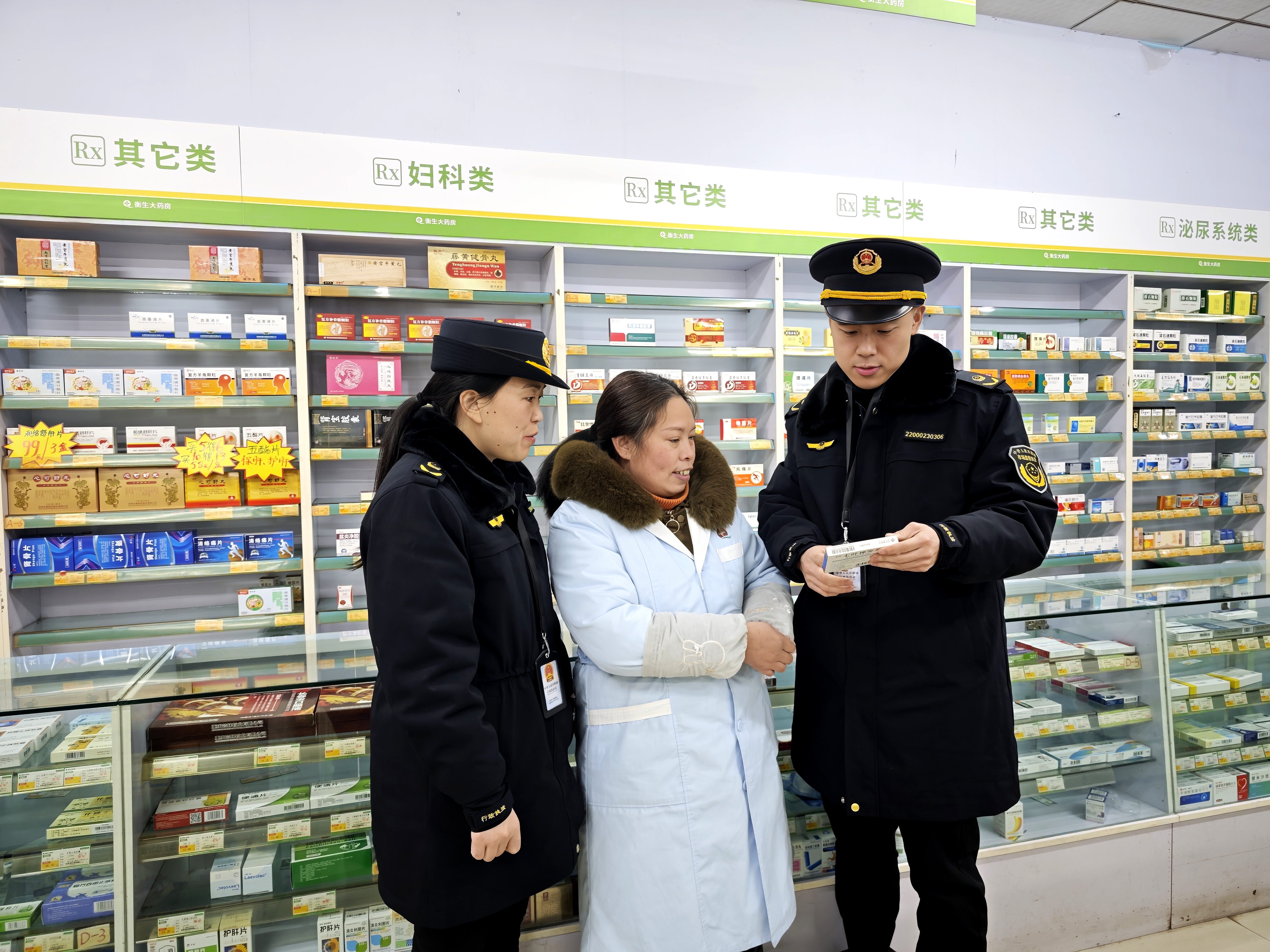 圖為1月7日,該局執(zhí)法人員在馬武鎮(zhèn)一家藥店檢查。(文光輝 王剛 攝)