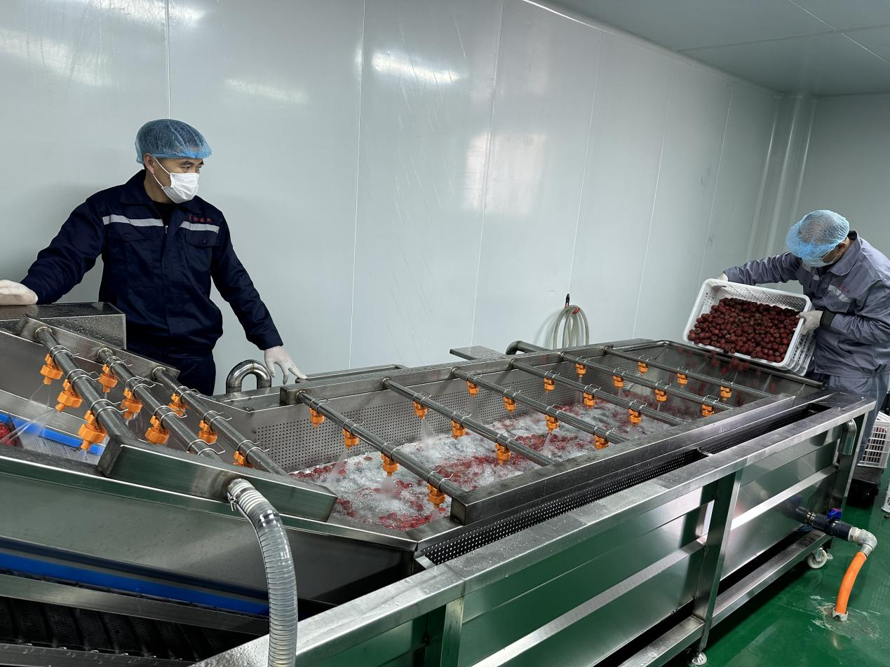 魯方藥業(yè)洗潤間,工作人員正在清洗山楂