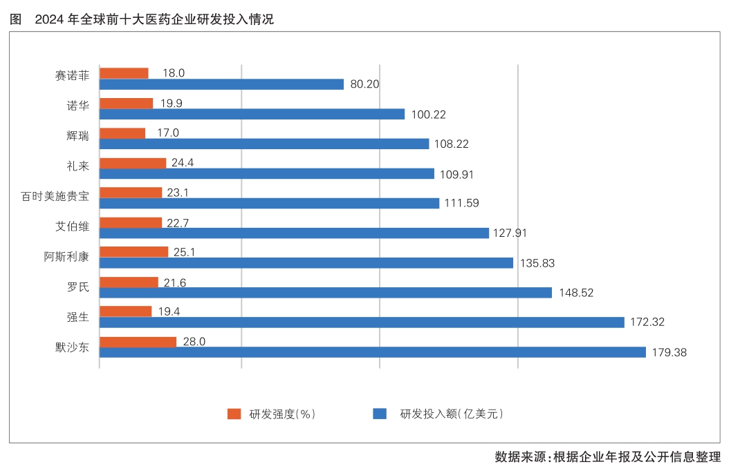 高強度研發(fā)投入是MNC保持全球競爭力的關(guān)鍵。2024年全球前十大醫(yī)藥企業(yè)持續(xù)加大研發(fā)投入(詳見圖)。這是其構(gòu)建技術(shù)壁壘、主導(dǎo)高價值市場、抵御專利懸崖風(fēng)險的戰(zhàn)略基礎(chǔ)。通過持續(xù)穩(wěn)定的研發(fā)投入,全球領(lǐng)先藥企在靶點發(fā)現(xiàn)、管線布局、臨床開發(fā)及轉(zhuǎn)化等關(guān)鍵環(huán)節(jié)建立起顯著優(yōu)勢,形成“高額研發(fā)投入—創(chuàng)新成果產(chǎn)出—豐厚市場回報—再投入”的良性循環(huán),不斷鞏固其行業(yè)領(lǐng)先地位。