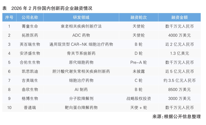 2026年2月份10家國內(nèi)創(chuàng)新藥企業(yè)完成新一輪融資