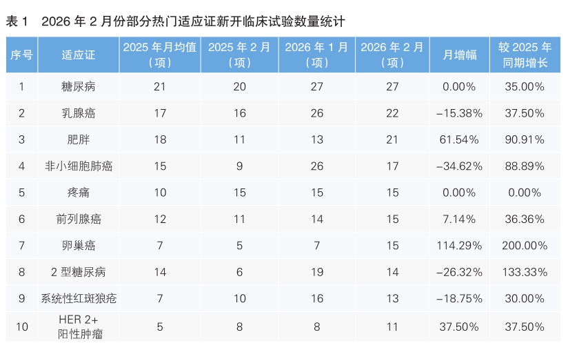 2月份美國Clinicaltrial數(shù)據(jù)庫臨床試驗(yàn)數(shù)據(jù)顯示—— 糖尿病、乳腺癌、肥胖等適應(yīng)證成研發(fā)熱點(diǎn)