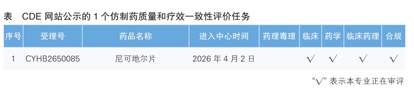 5.CDE網(wǎng)站公示1個仿制藥質(zhì)量和療效一致性評價任務(wù)(詳見表),所涉藥品為尼可地爾片。