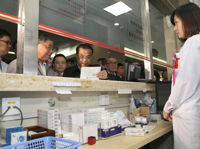 圖為李克強總理今年4月11日在上海復(fù)旦大學(xué)附屬華山醫(yī)院考察民生迫切需求的藥品供應(yīng)及價格。