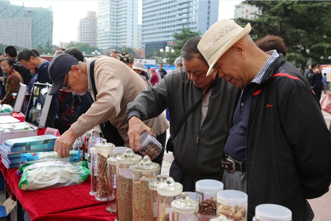 圖為蘭州市民在真假中藥材鑒別臺前駐足觀看。丁怡媛 王發(fā)基 攝影報道