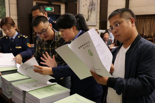 貴州省食品安全示范“三級聯(lián)創(chuàng)”考評組工作人員查看貴陽市相關(guān)資料。本報記者 蒙水 攝