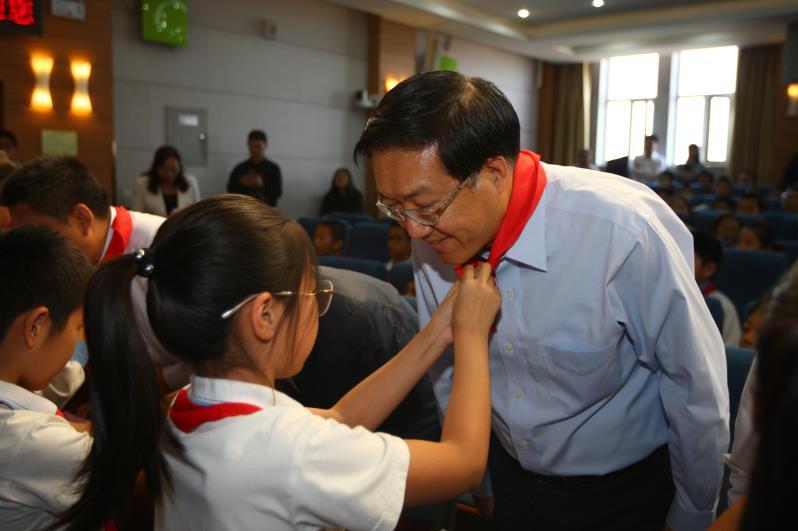 少先隊(duì)員向陳鋼敬獻(xiàn)紅領(lǐng)巾