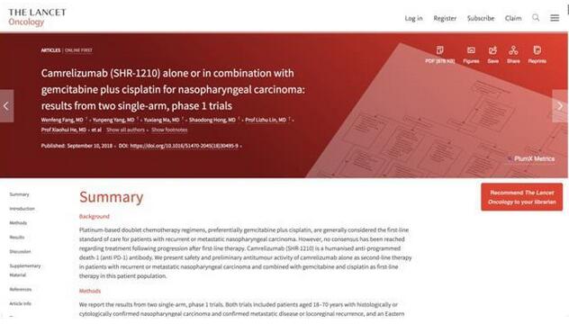 或是國內(nèi)首個治療鼻咽癌的PD-1單抗