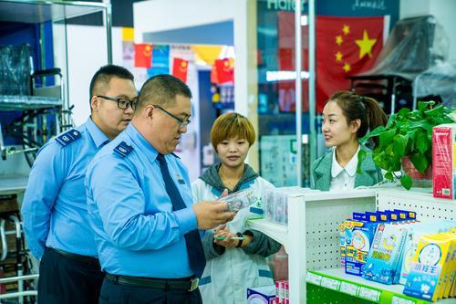 圖為執(zhí)法人員在一家藥店的醫(yī)療器械專柜進(jìn)行檢查。田北方 攝