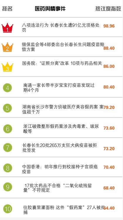 醫(yī)藥輿情事件排行榜|長春長生遭91億元頂格處罰