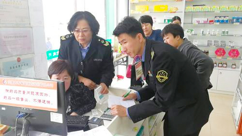 圖為該局執(zhí)法人員在藥店檢查藥品進(jìn)貨渠道。本報記者 楊燕 攝
