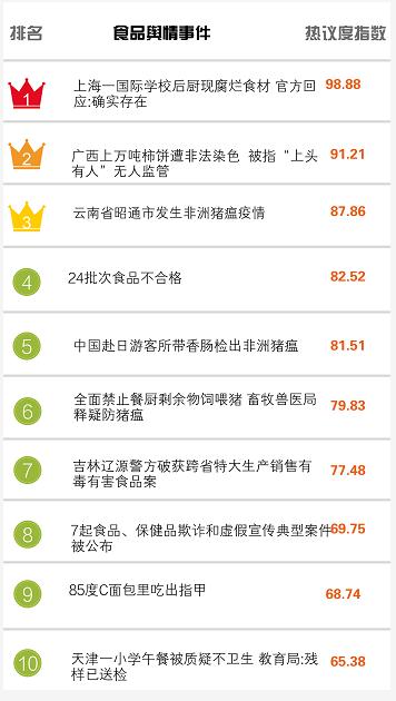 食品輿情事件排行榜監(jiān)測時段:2018年10月19日至2018年10月25日。