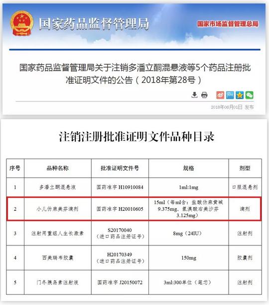 今年6月,國家藥監(jiān)總局發(fā)布了《關(guān)于注銷多潘立酮混懸液等5個藥品注冊批準(zhǔn)證明文件的公告》,經(jīng)企業(yè)主動申請注銷了多潘立酮混懸液(嗎丁啉)、小兒偽麻美芬滴劑(艾暢)、注射用重組人生長激素、西美瑞韋膠囊和門冬胰島素注射液5個品種的批文,其中兒童暢銷藥艾暢和嗎丁啉被不少父母所熟知。