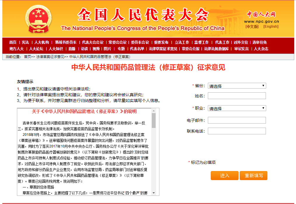 11月1日,《藥品管理法》修正草案在中國人大網(wǎng)公布,開始公開征求社會各界意見,征求意見截至時間為2018年12月1日。