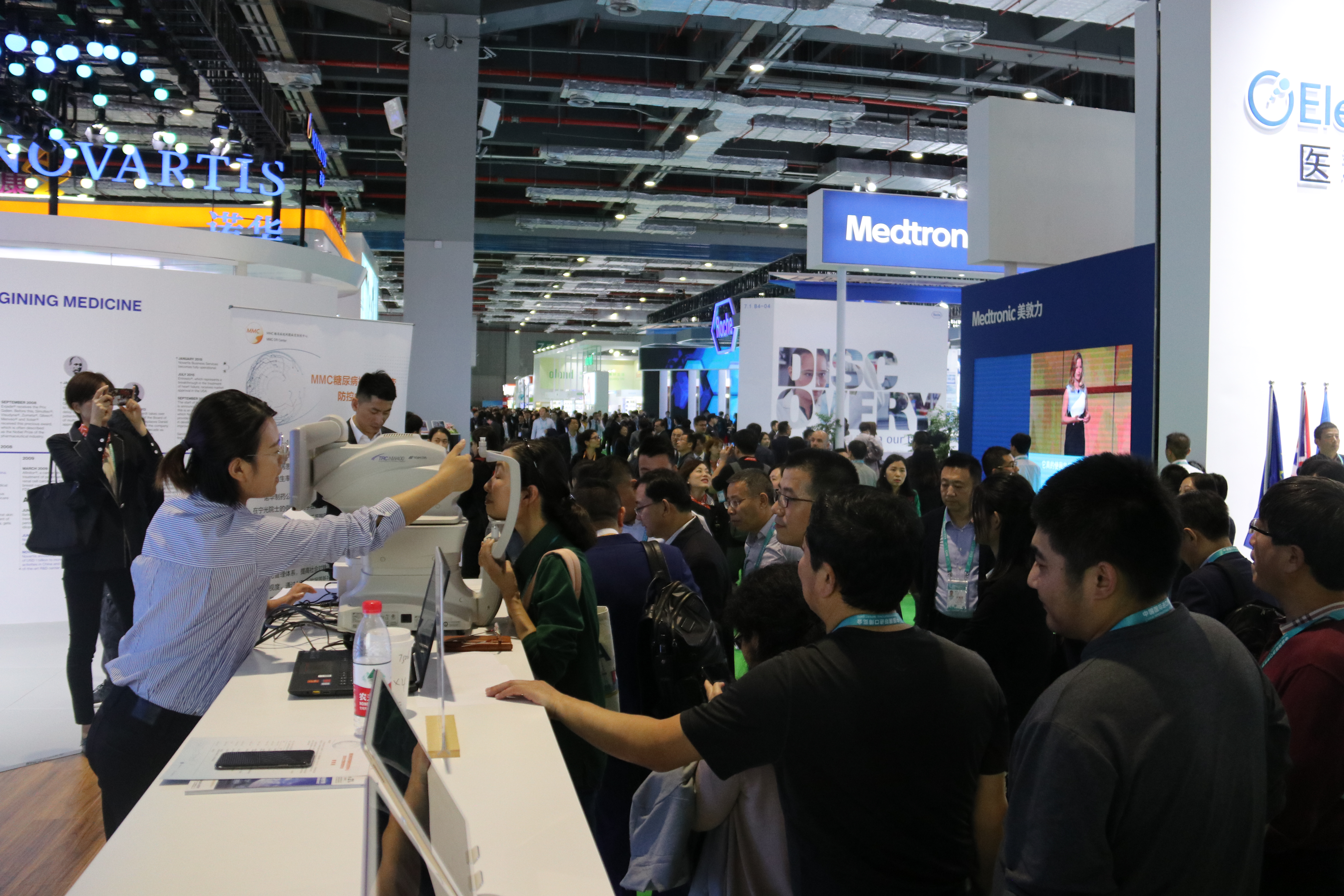 在進(jìn)博會的諾華展臺,一臺小小的眼科檢查機(jī)器前排起了長龍,本著“大家都在排隊那我也要排隊”的精神,食藥君也加入長隊行列——雙眼分別對準(zhǔn)儀器,一分鐘后,一份結(jié)果寫著“無視網(wǎng)膜病變”的報告就交到了食藥君手上。這是一臺對糖尿病視網(wǎng)膜病變進(jìn)行篩查的機(jī)器。