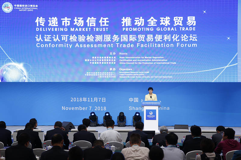 11月7日,首屆中國國際進口博覽會“認證認可檢驗檢測服務(wù)國際貿(mào)易便利化”論壇在滬舉辦。本次論壇由國家市場監(jiān)督管理總局、國家認證認可監(jiān)督管理委員會、中國國際貿(mào)易促進委員會共同主辦,由市場監(jiān)管總局發(fā)展研究中心、中國貿(mào)促會貿(mào)易促進中心、上海市質(zhì)量技術(shù)監(jiān)督局共同承辦。論壇主題為“傳遞市場信任 推動全球貿(mào)易”,論壇的舉辦是為了更好地發(fā)揮認證認可檢驗檢測“傳遞信任,服務(wù)發(fā)展”的本質(zhì)屬性,加強市場監(jiān)管,優(yōu)化營商環(huán)境,為推動全球貿(mào)易便利化發(fā)展提供更加優(yōu)良的服務(wù)。國家市場監(jiān)督管理總局副局長甘霖、中國國際貿(mào)易促進委員會會長高燕、商務(wù)部部長助理任鴻斌等出席。