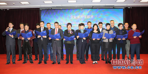20位企業(yè)家代表共同發(fā)布企業(yè)家責任宣言。經(jīng)濟日報-中國經(jīng)濟網(wǎng)記者裴小閣/攝