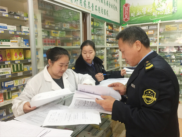 圖為執(zhí)法人員在一家藥店檢查。趙海軍 攝