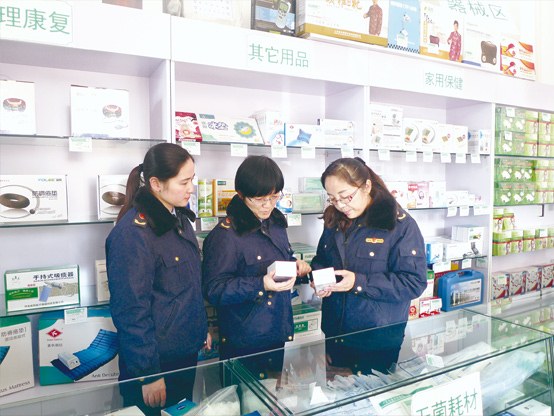 圖為近日該局執(zhí)法人員在一家藥店的器械專柜檢查。本報記者 董傳陽 攝